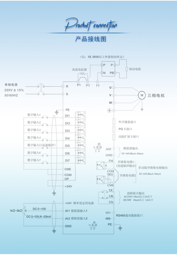 5800系列單相220V輸入三相380V輸出的變頻器,適用于沒有三相380V用電的場合,無需改電機接法,通過將民用220V電,直接帶動三相380V的異步電機,此款變頻器不僅帶載能力強,還可以起到軟啟動和調節三相異步電機速度的功能。